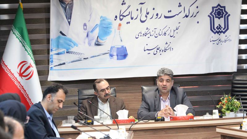 در ابتدای این مراسم، دکتر ژاله، رئیس آزمایشگاه مرکزی دانشگاه، ضمن ابلاغ تبریک ریاست دانشگاه بوعلی سینا، جایگاه کارشناسان آزمایشگاه را در کاربردی کردن مفاهیم نظری مهم دانست. وی با ارائه آمار وضعیت دانشگاه در زمینه آزمایشگاه ها و کارشناسان آزمایشگاهی، عملکرد و رتبه بندی آزمایشگاه های عضو شبکه آزمایشگاهی کشور در دو سال گذشته را تشریح نمود و گزارشی از اقدامات صورت گرفته و برنامه های سال جاری مدیریت آزمایشگاه مرکزی بر اساس برنامه چشم انداز دانشگاه، ارائه کرد.