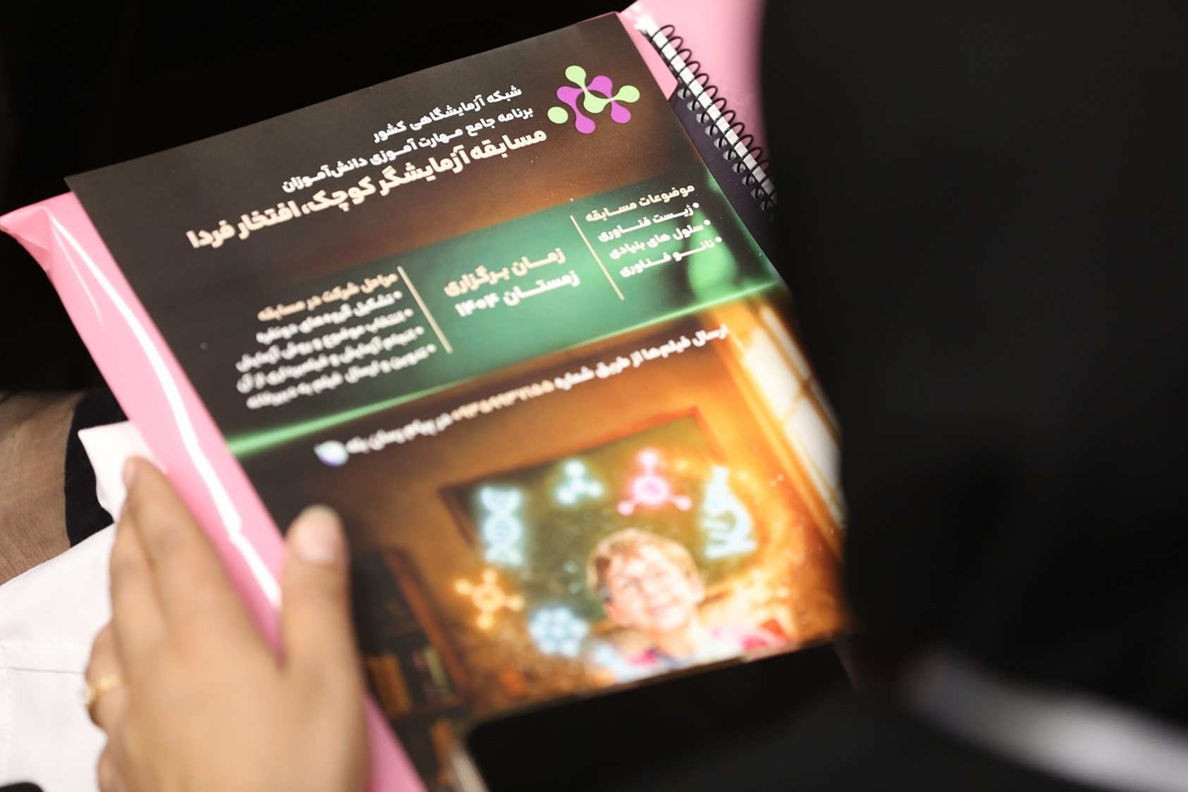 2- انجام آزمایش: دانشآموزان با راهنمایی دبیر خود آزمایشی را انتخاب و شیوه انجام آن را آموزش میبینند. سپس به انجام آن در محل آزمایشگاه مدرسه یا پژوهشسرای دانش آموزی میپردازند و از مراحل اجرای آن فیلمبرداری میکنند. سپس فیلمها را تدوین و آماده مینمایند. محدودیتی در انتخاب موضوع آزمایش وجود ندارد.
